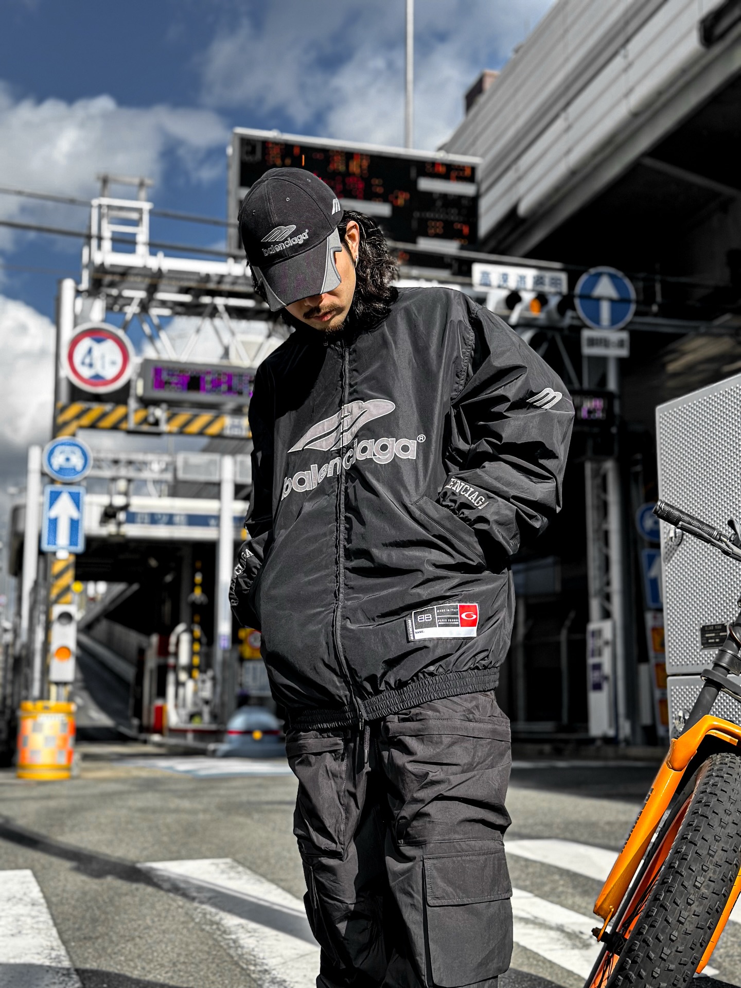 人気のトラックジャケットを主役にブラックで統一感を出した、ラグジュアリーなストリートコーデ
